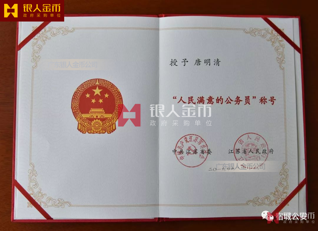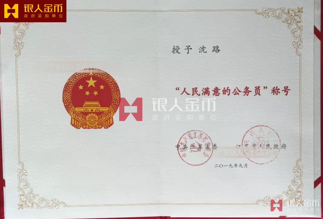 中共中央、國務院、中共中央組織部、中共中央宣傳部全國人民滿意的公務員榮譽稱號獎牌獎章證書(圖)--【廣州銀人勛章獎章紀念章獎牌徽章廠有限公司】
