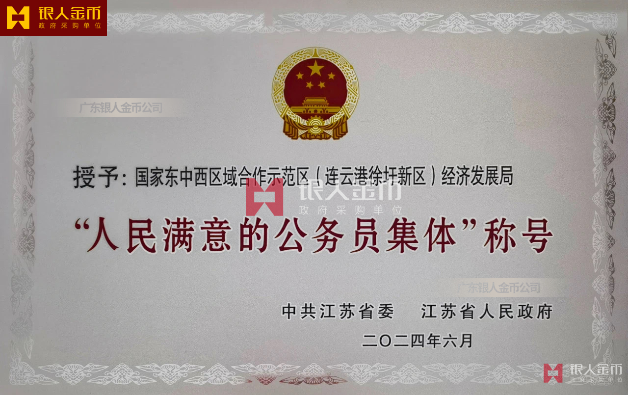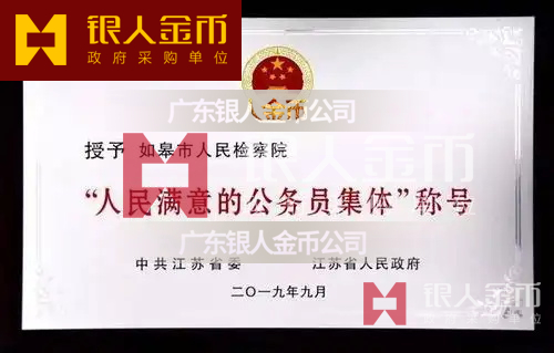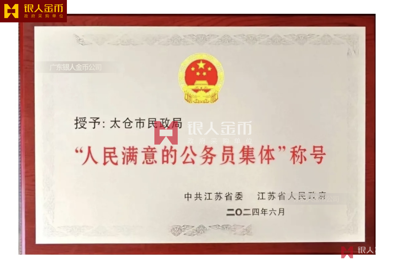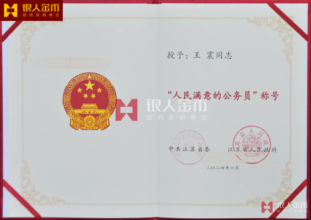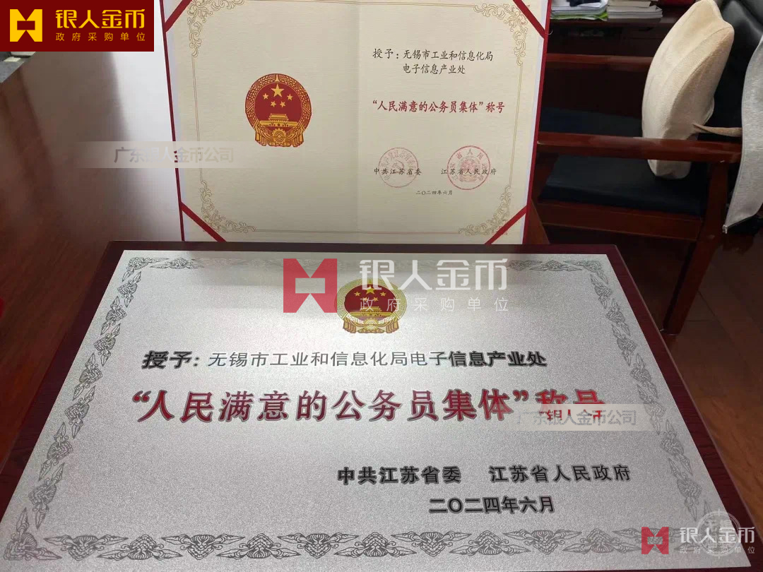中共江蘇省委、江蘇省人民政府、中共江蘇省委組織部全省人民滿意的公務員集體稱號獎牌獎章證書(圖)--【廣州銀人勛章獎章紀念章獎牌證書廠有限公司】