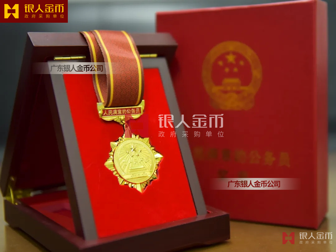 中共中央、國務院為人民服務字樣新款人民滿意的公務員稱號獎牌獎章證書(圖)--【廣州銀人勛章獎章紀念章獎牌徽章廠有限公司】