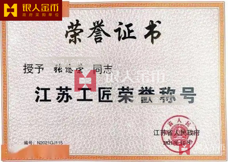 中共江蘇省委省政府省人社廳省總工會江蘇大工匠獎章勛章江蘇工匠徽章獎牌證書(圖)