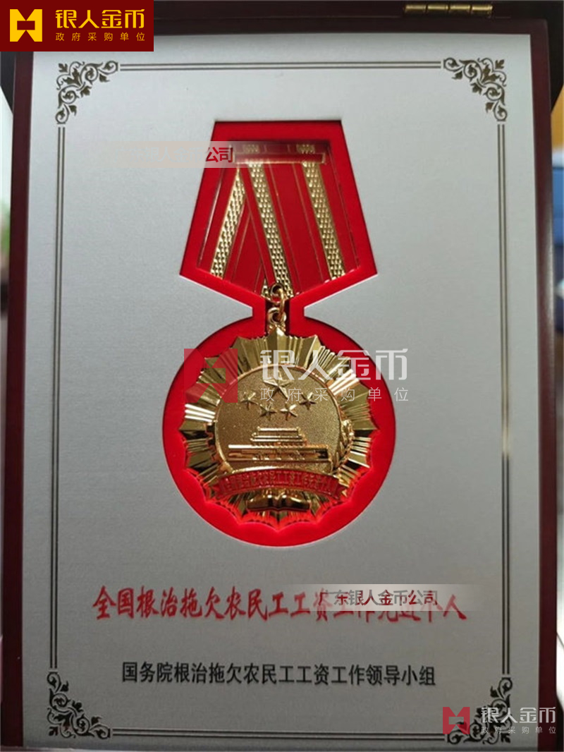 國務院根冶拖欠農民工工資工作領導小全國根治拖欠農民工工資工作先進個人和先進集體獎章勛章紀念章獎牌證書(圖)
