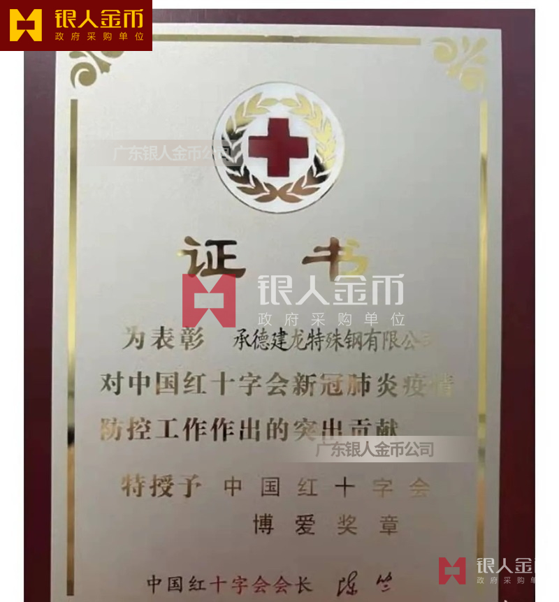 中國紅十字會總會公益事業的榮譽:中國紅十字會博愛獎章勛章獎牌證書(圖)-【制作標準規范】