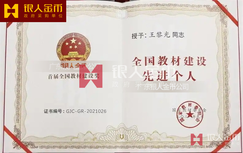國家教材委員會全國教材建設先進集體和全國優秀教材獎與先進個人獎章證書勛章紀念章(圖)