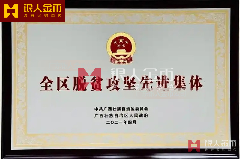 中共廣西壯族自治區黨委、廣西壯族自治區人民政府廣西壯族自治區脫貧攻堅先進集體獎牌證書和先進個人獎章證書(圖)
