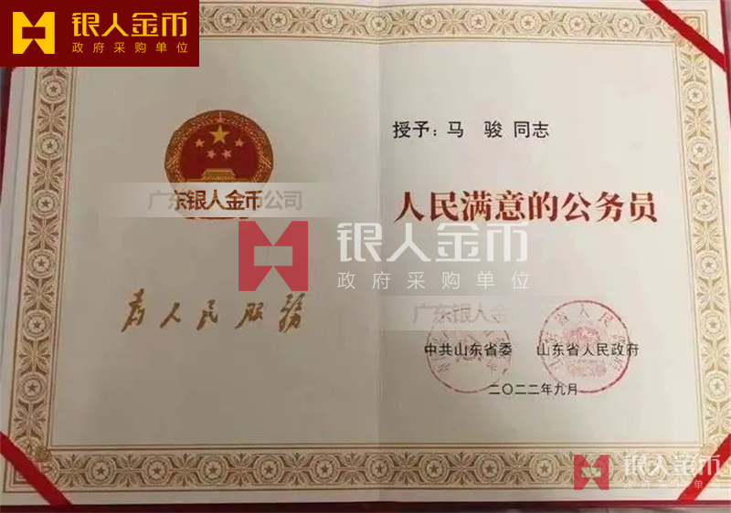 中共山東省委、中共山東省委組織部山東省人民滿意的公務員集體獎牌證書和山東省人民滿意的公務員獎章證書(圖)