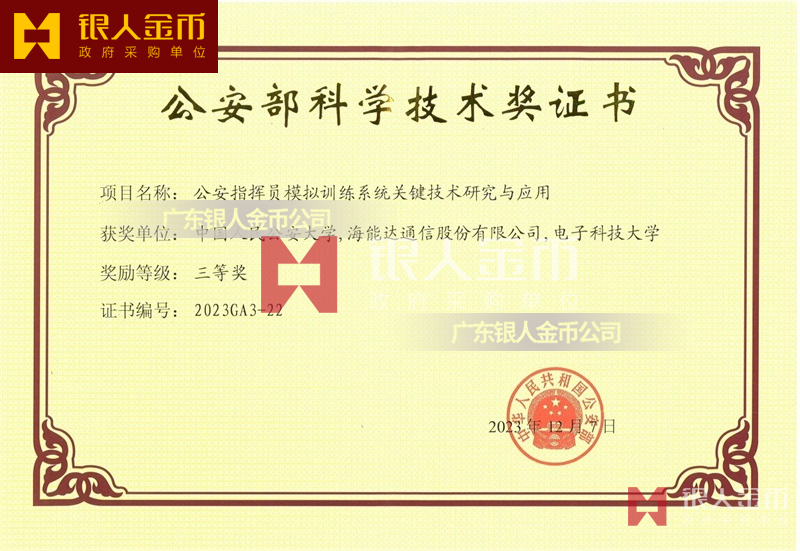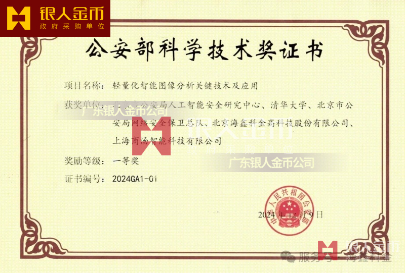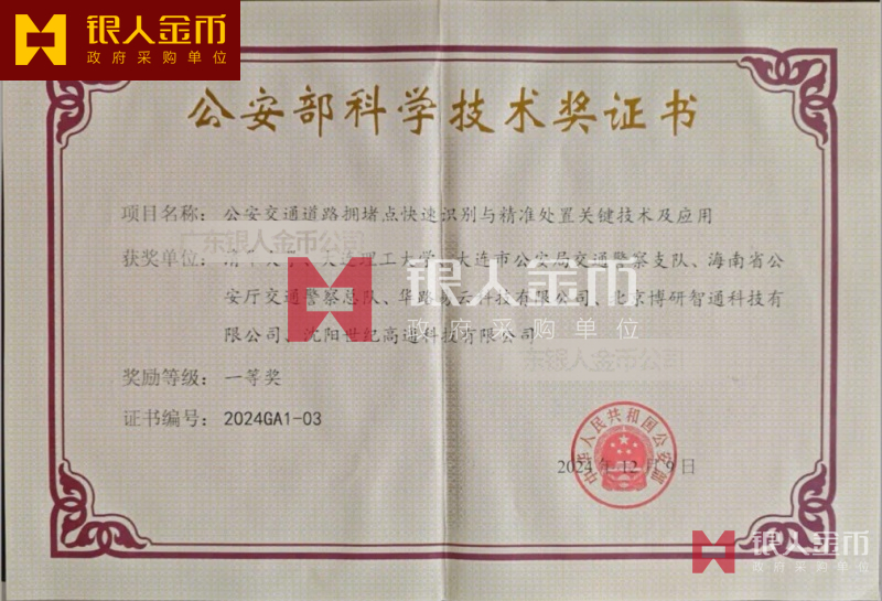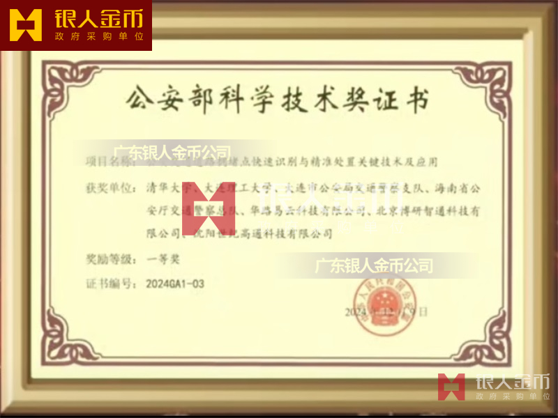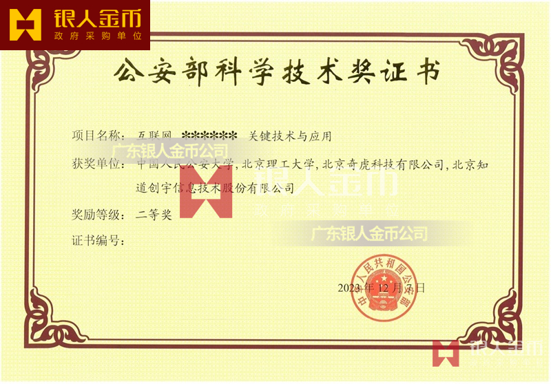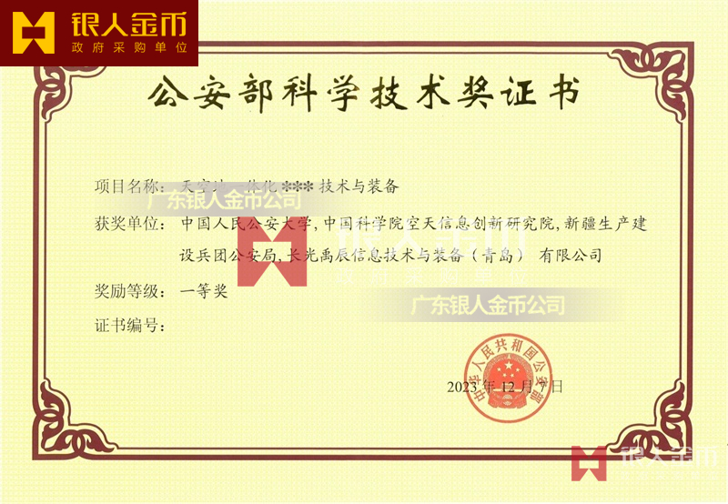 中華人民共和國公安部公安科技最高獎全國公安科技領域的最高榮譽:公安部科學技術獎一等獎證書(圖)