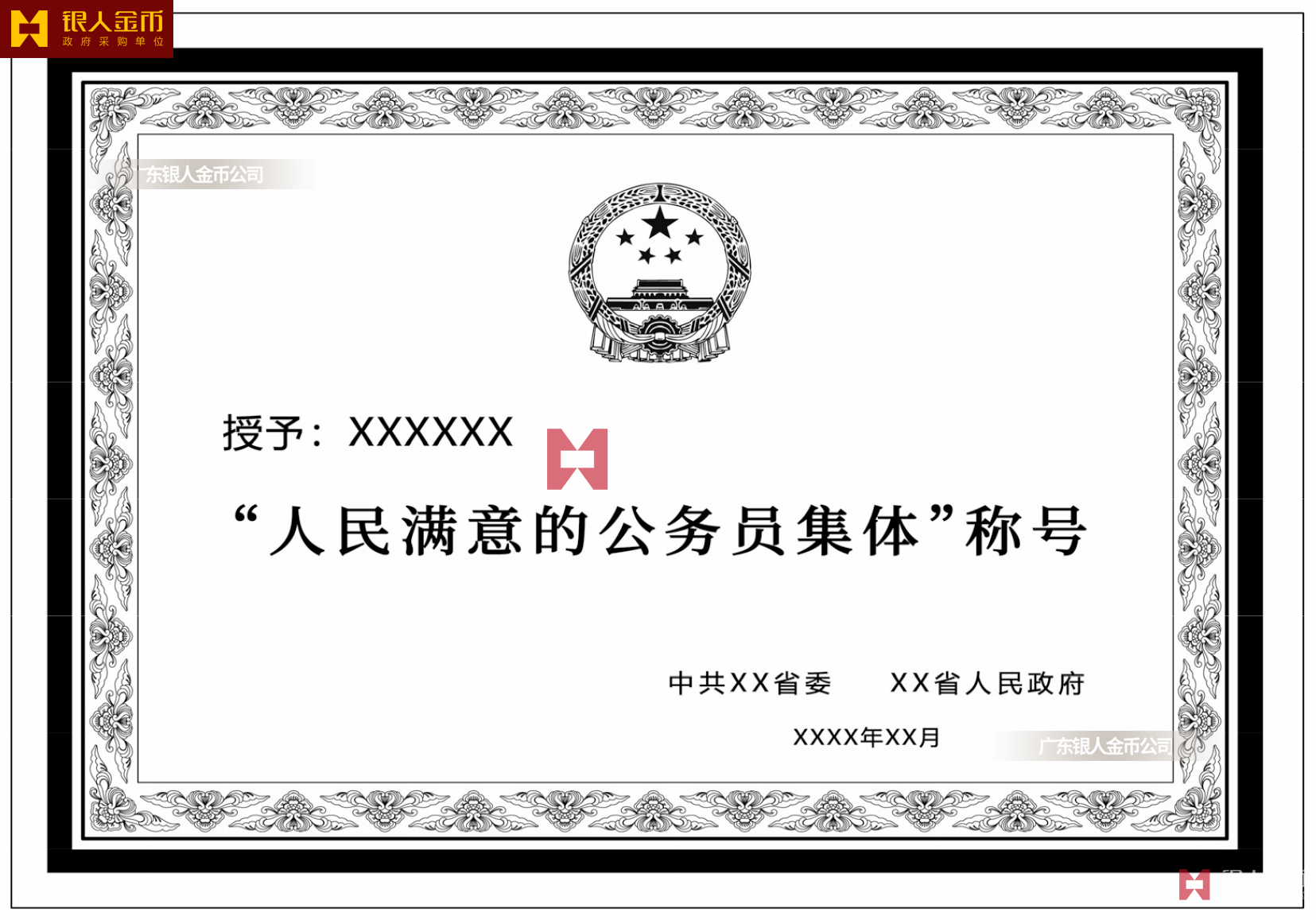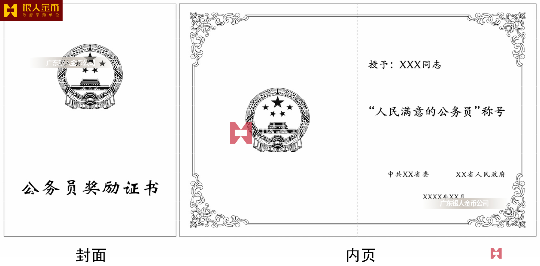 中組部標準公務員獎勵證書、記功獎章、獎牌制作式樣【國家公務員局】