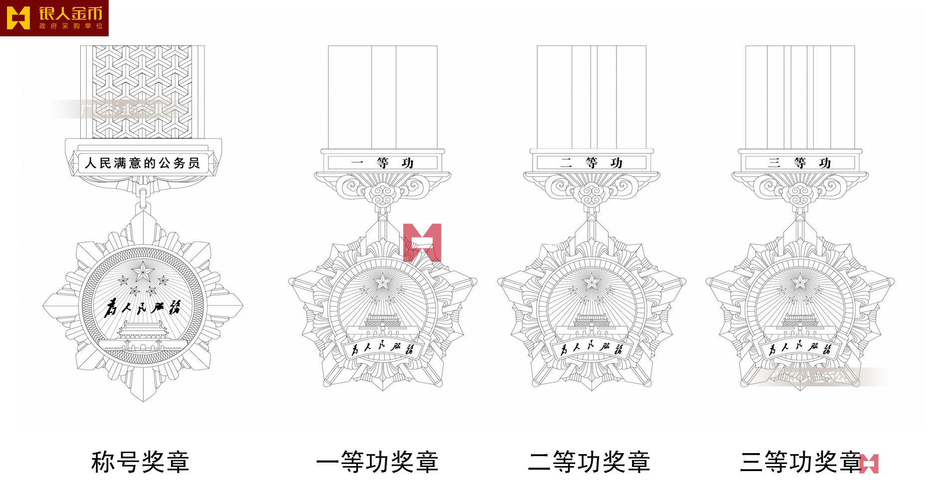 中組部全國統一政府部門機關單位標準人民滿意的公務員一二三等功獎章制作(圖)定制人民滿意的公務員一二三等功獎章制作及獎勵證書定做(圖)