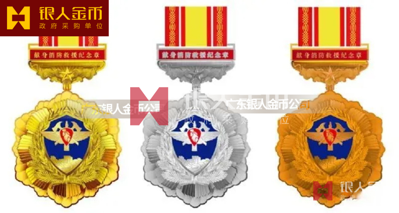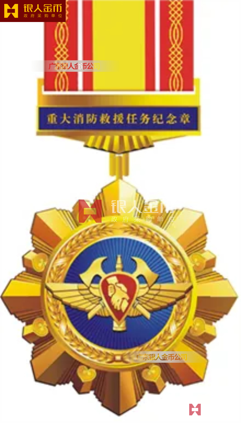金質、銀質、銅質“獻身消防救援紀念章”分別頒發給烈士和因公犧牲、因公致殘的消防救援人員。 重大消防救援任務紀念章