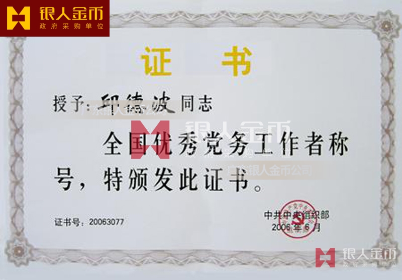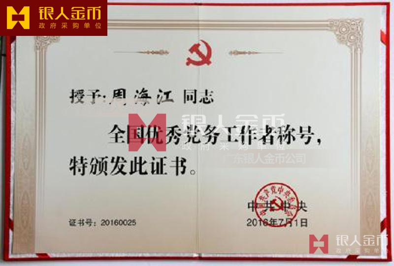 中共中央/中組部2020年“全國優秀黨務工作者”稱號獎章、獎牌、證書(實物)