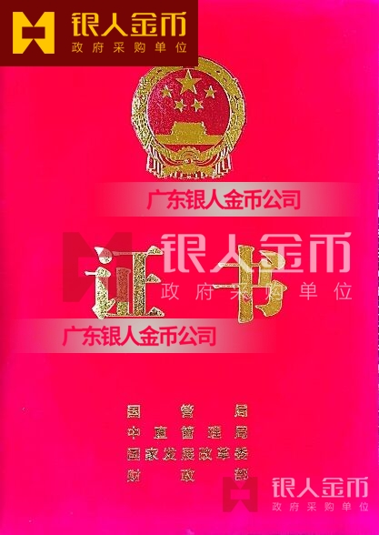 廣東銀人金幣公司經中國人民銀行批準,頒發《經營流通人民幣許可證》、國家市場監管相關部門核準。