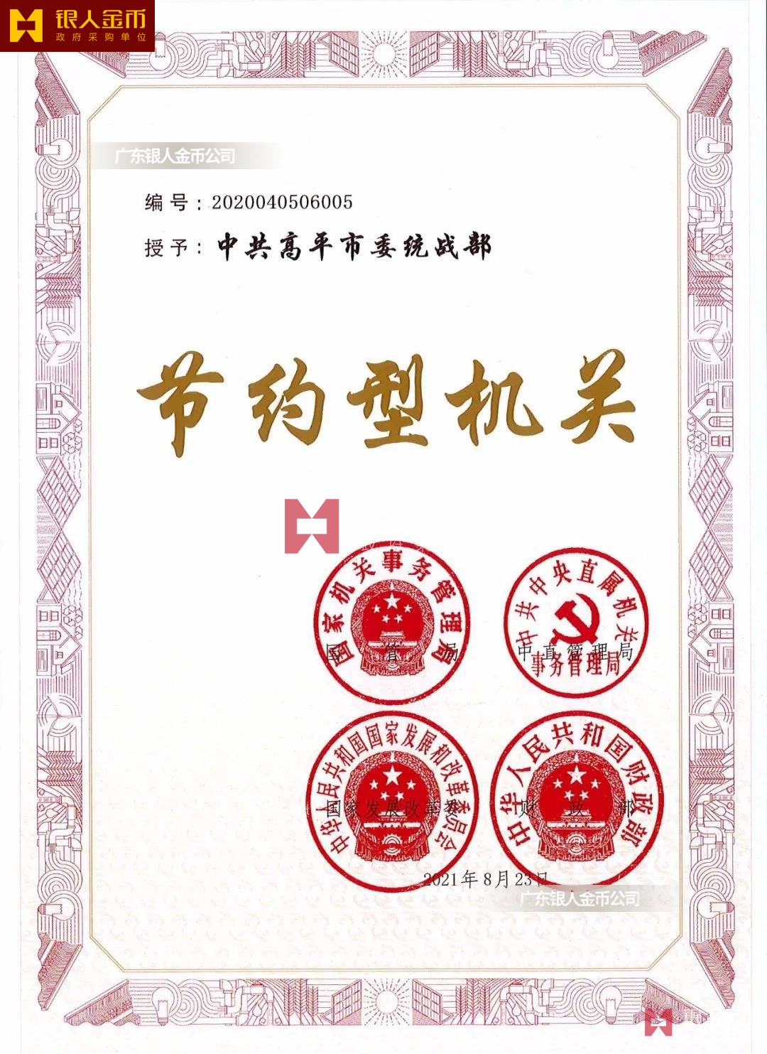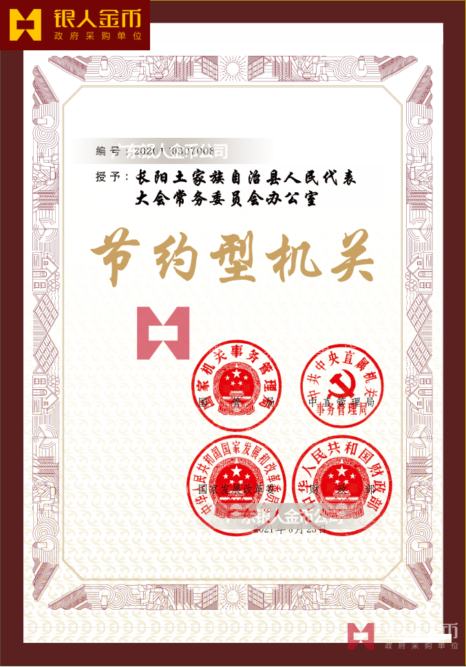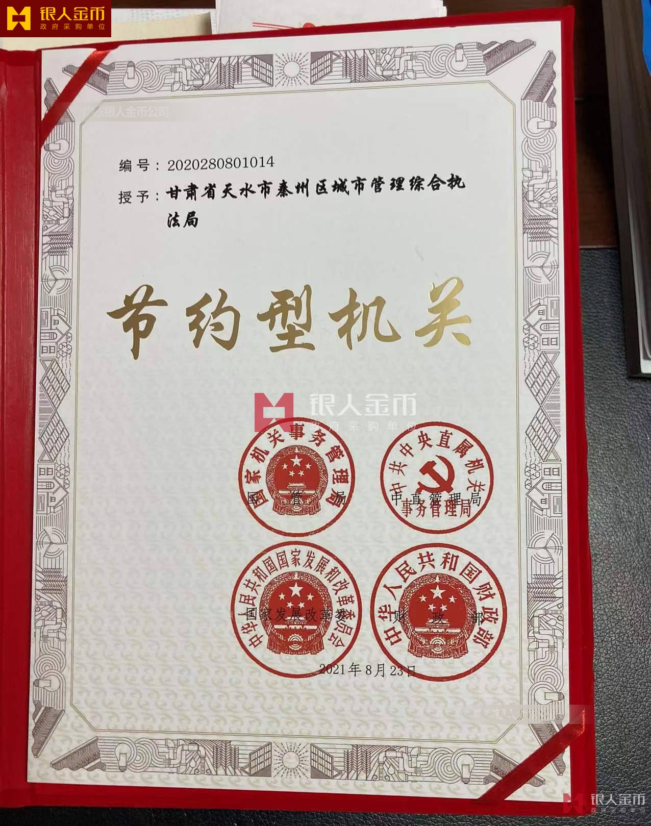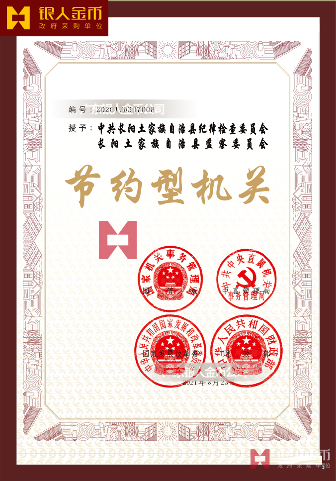 中共中央直屬機關事務管理局/國家機關事務管理局/“節約型機關”榮譽稱號獎牌榮譽證書(圖)