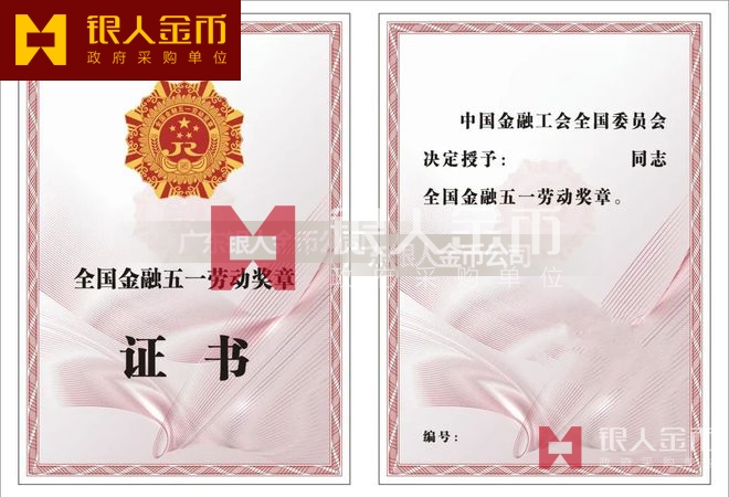 新版 “全國金融五一勞動獎”獎章、紀念章、勛章、證章、徽章