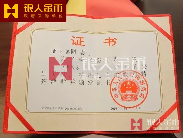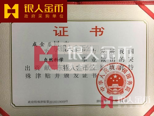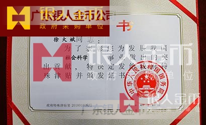 中華人民共和國國務院政府特殊津貼證書(圖)-【廣州銀人紀念章證章廠家有限公司】