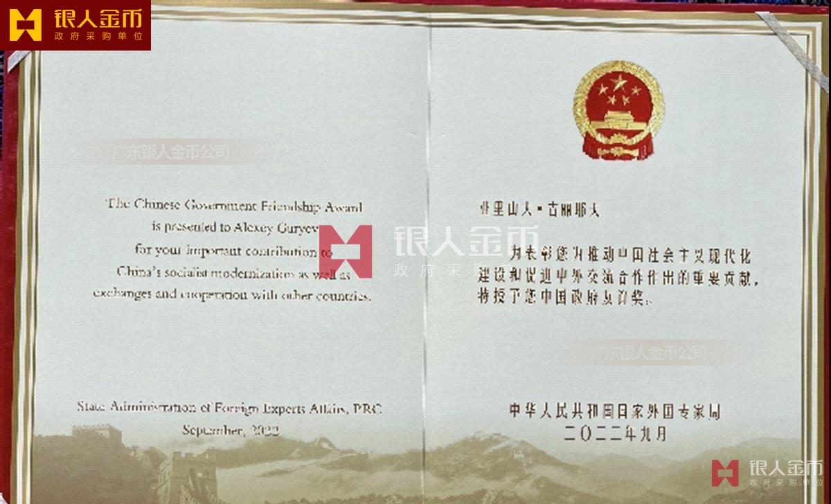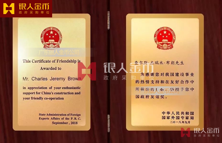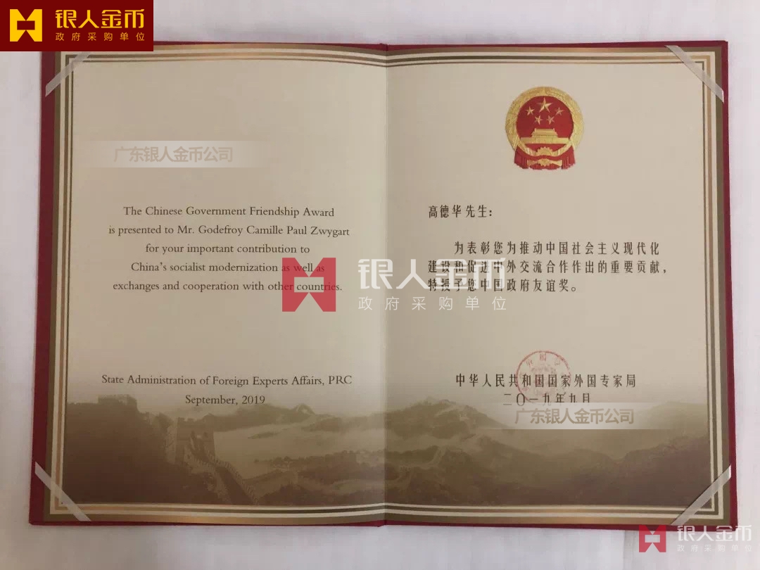 國務院/外交部/國家外國專家局-中國政府友誼獎獎章獎牌證書紀念牌(圖)【國家榮譽稱號勛章】