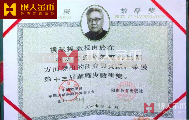 華羅庚數學獎金牌、獎牌、證書