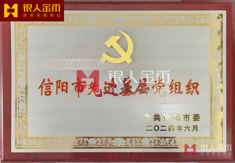 中共河南省信陽市委市政府市委組織部先進基層黨組織獎牌證書銅牌牌匾(圖)