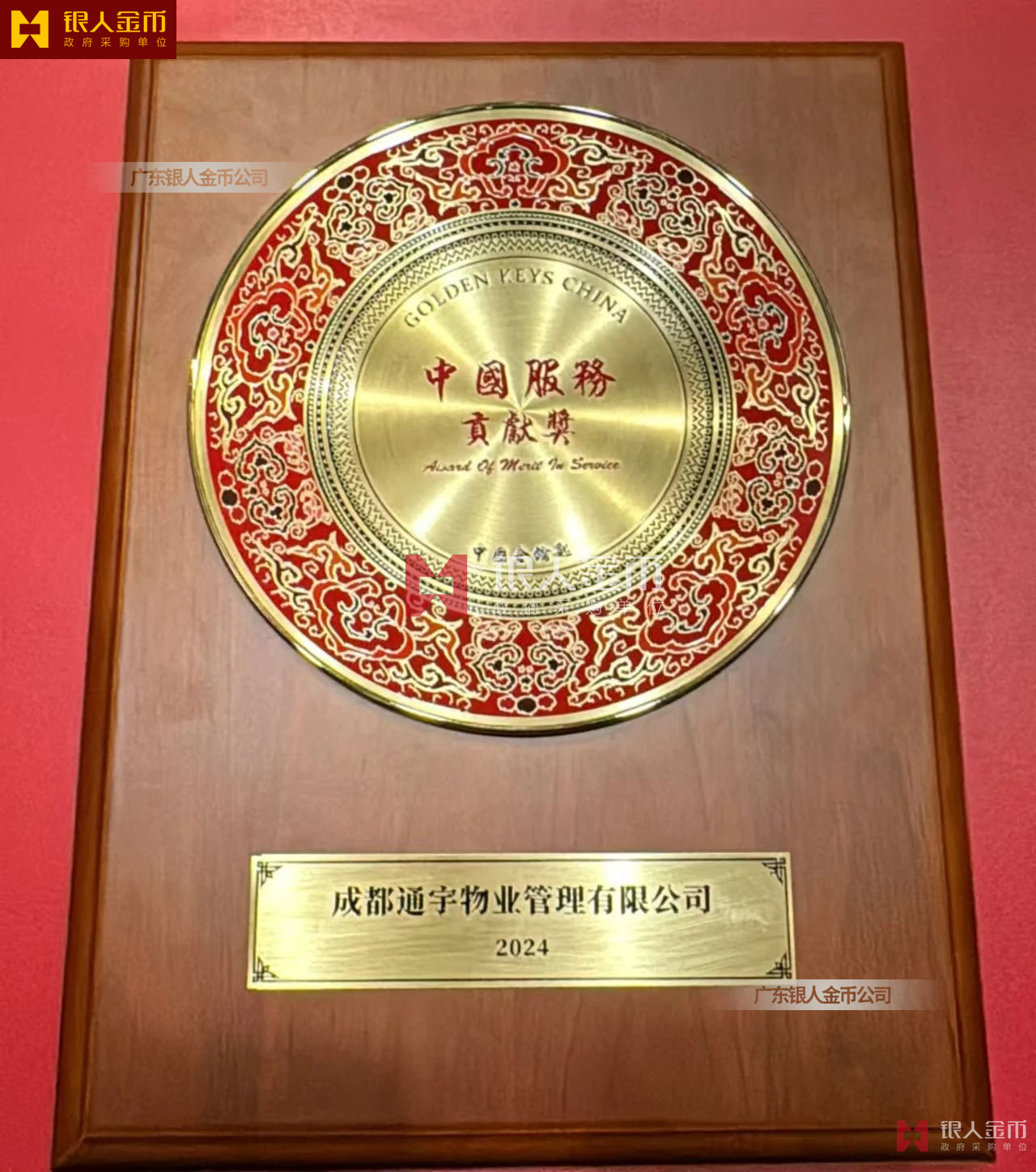 中國金鑰匙年度“中國服務示范企業”獎牌牌匾與“中國服務貢獻獎”獎牌牌匾(圖)