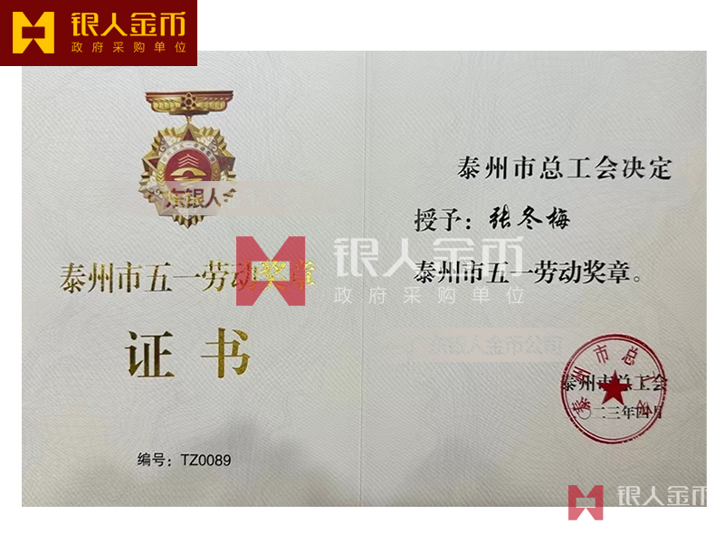 江蘇省泰州市總工會泰州市五一勞動模范獎章,五一勞動獎狀,五一勞動獎牌,工人先鋒號獎牌證書(圖)