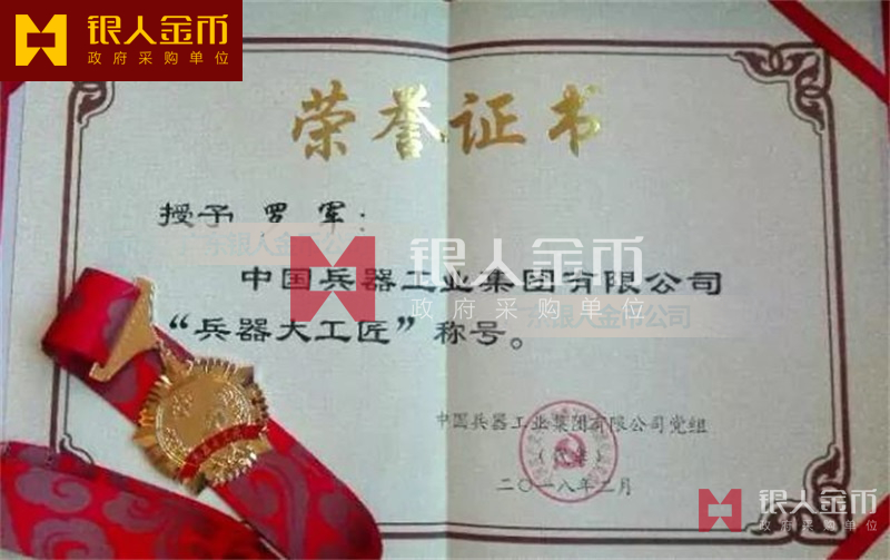 中國兵器工業集團兵器大工匠獎章勛章紀念章榮譽獎章榮譽勛章獎牌證書(圖)