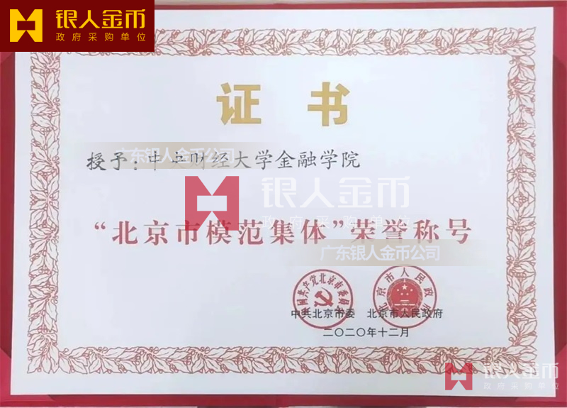 中共北京市委、北京市政府北京市模范集體獎牌證書(圖)