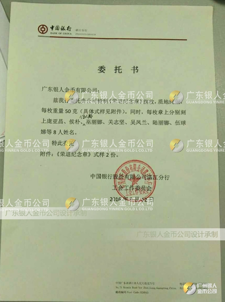 廣東銀人金幣公司承接客戶個性化定制的金銀幣、金銀章、金銀條、金銀牌、金銀盤均由國家質監部門、嚴格檢測、權威鑒定:
