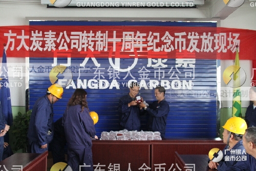 9月27日,紀念幣如約運送到了公司,采購部立即組織黨群工作部、人力資源部相關人員隨機將銀幣樣品送到公司檢測中心進行測試。經檢測,此紀念幣符合國家有色金屬及電子材料測試中心分析檢測報告。人力資源部立即組織人員清點數量并進行發放。發放工作分三個地點同時進行,各單位領導親臨現場向每位員工進行發放,員工們個個臉上洋溢著幸福的微笑,流露出了方大人的自豪感。
