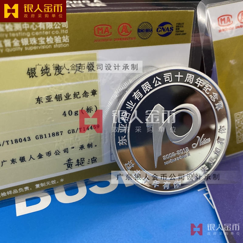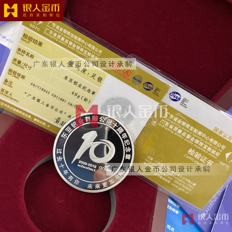 東亞鋁業集團在創業十年后恰逢公司成立10周年紀念慶典、委托定制銀幣紀念幣1200枚。