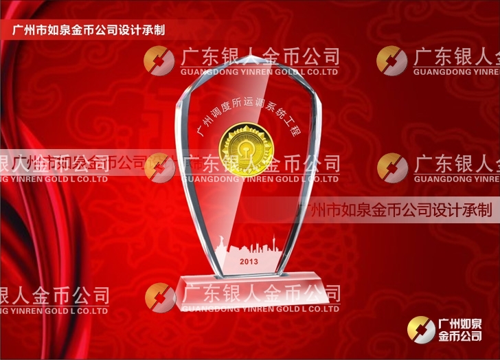 2013年5月:定制廣鐵集團定制水晶擺件鑲紀念章定制