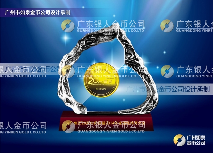 2014年1月:定制廣州立白集團20周年慶純金牌鑲嵌水晶擺件