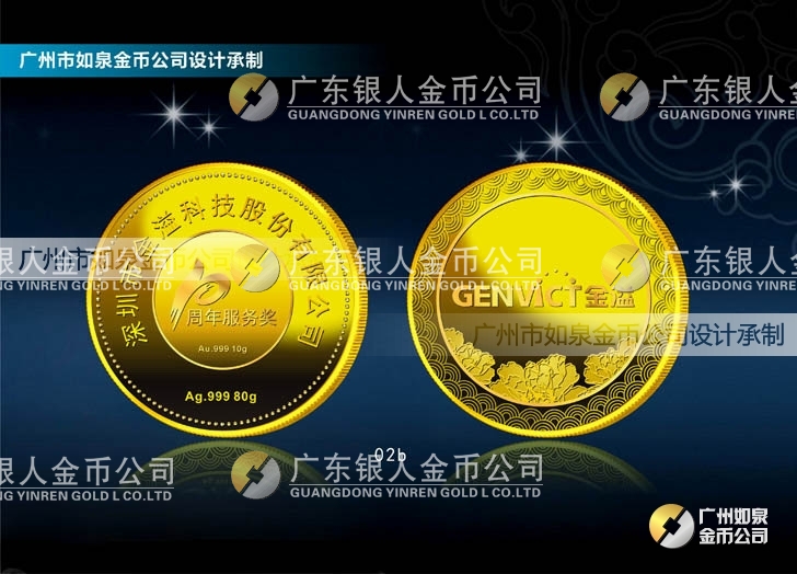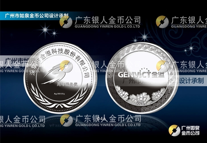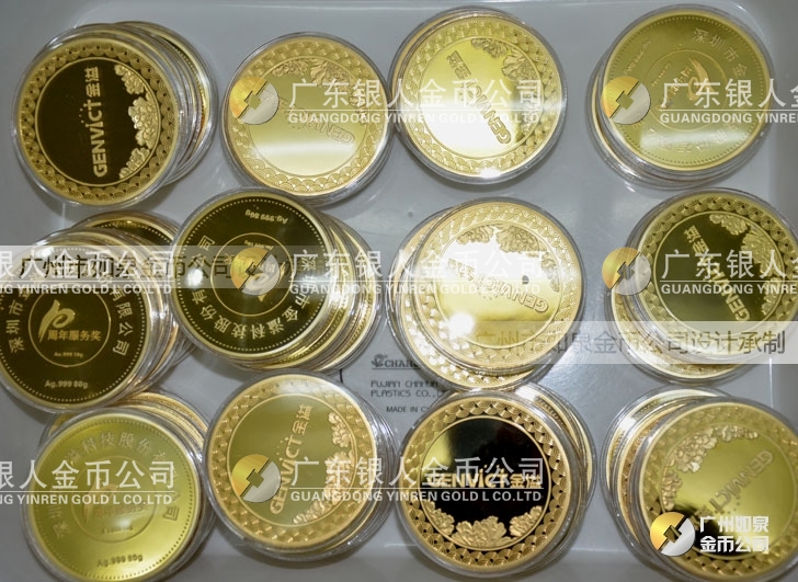 深圳市金溢科技公司上市紀念幣周年慶表彰獎勵服務滿五年優秀員工、十年以上老員工定制純金銀紀念幣