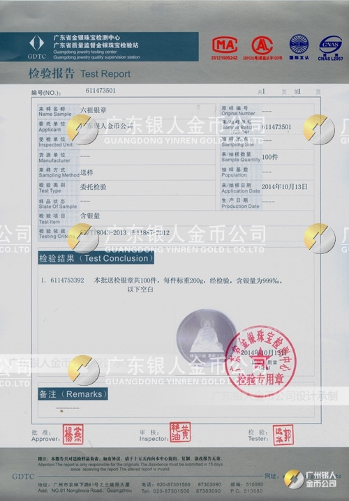 【金銀品質】 國家檢測鑒定、真假防偽查詢