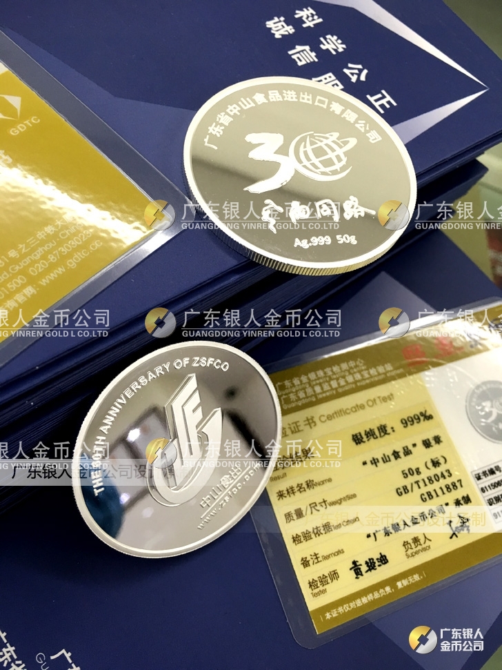 廣東銀人金幣公司承接客戶個性化定制的金銀幣、金銀章、金銀條、金銀牌、金銀盤均由國家質監部門、嚴格檢測、權威鑒定: