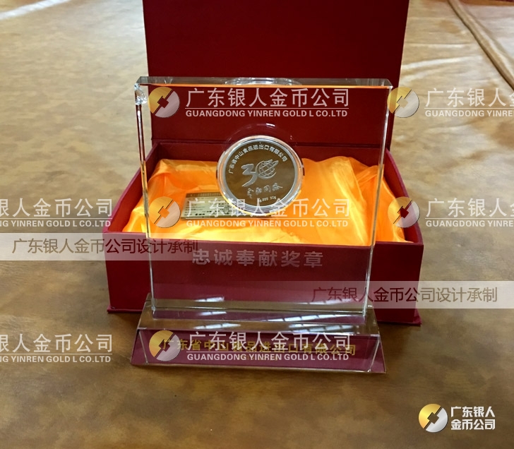 2015年11月制作 中山市食品進出口公司純銀紀念章鑲水晶擺件