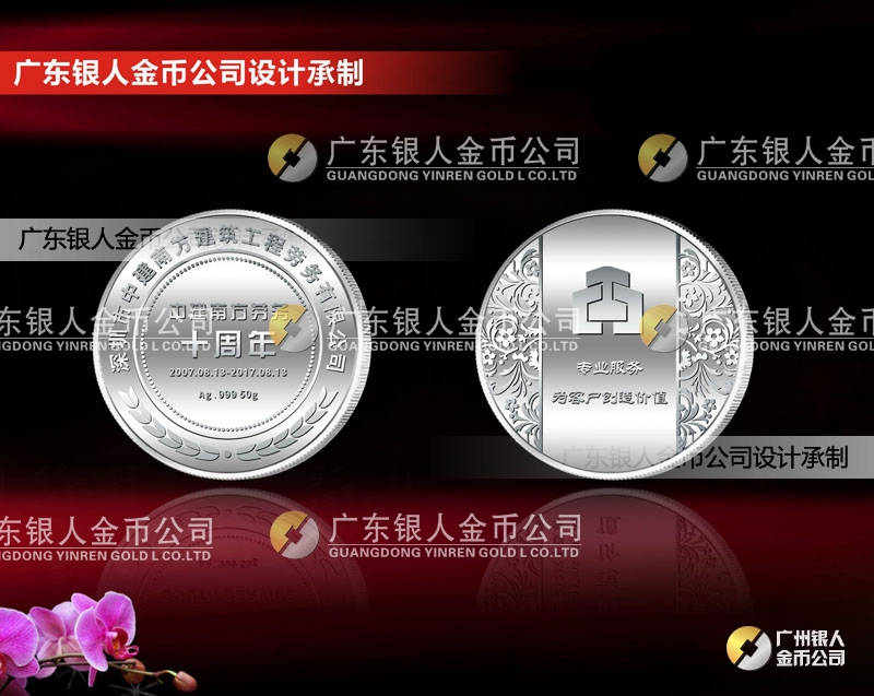 為了慶祝中建南方勞務公司成立十周年慶,特此委托我司設計、制作公司周年慶紀念幣定做。