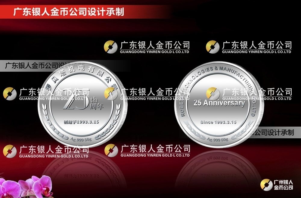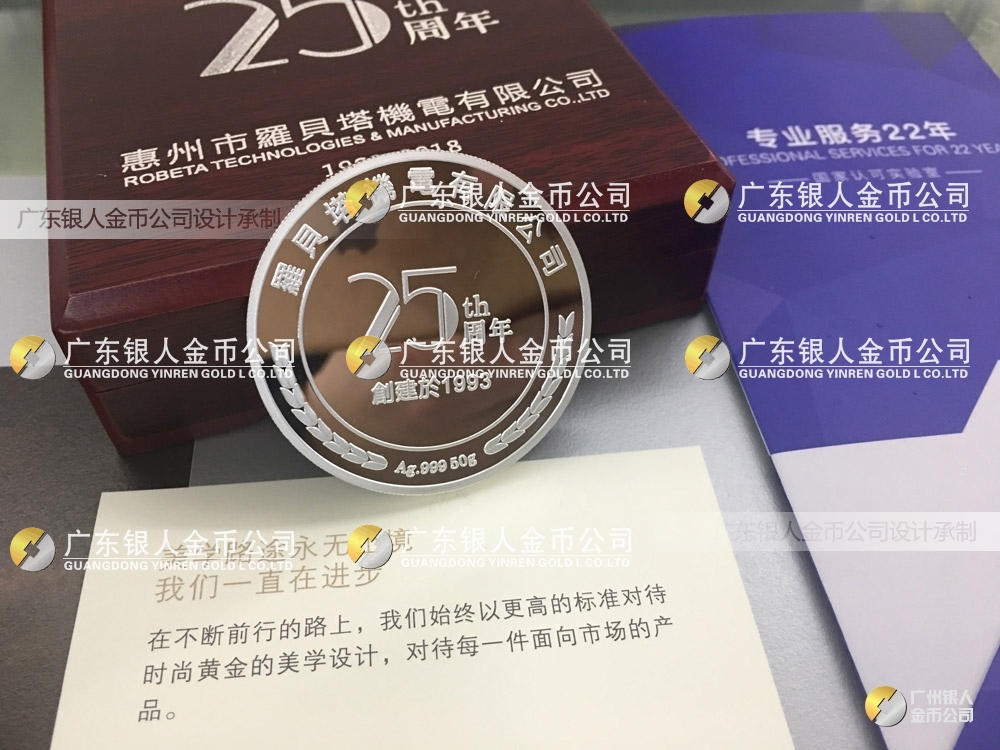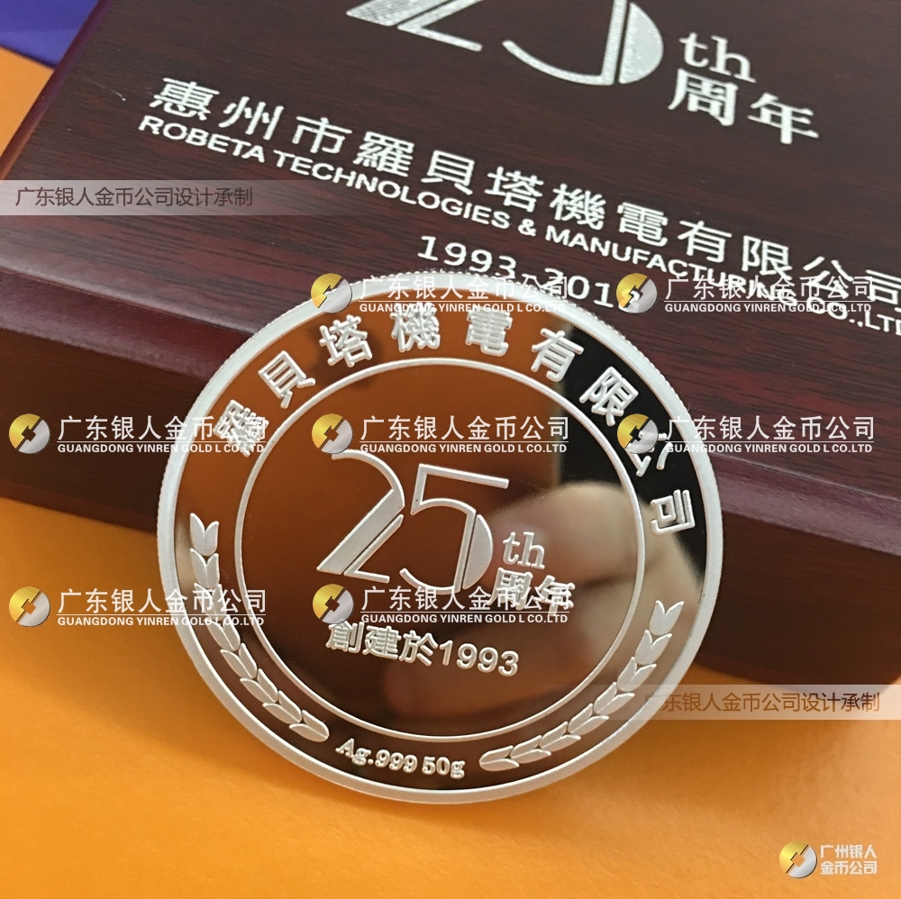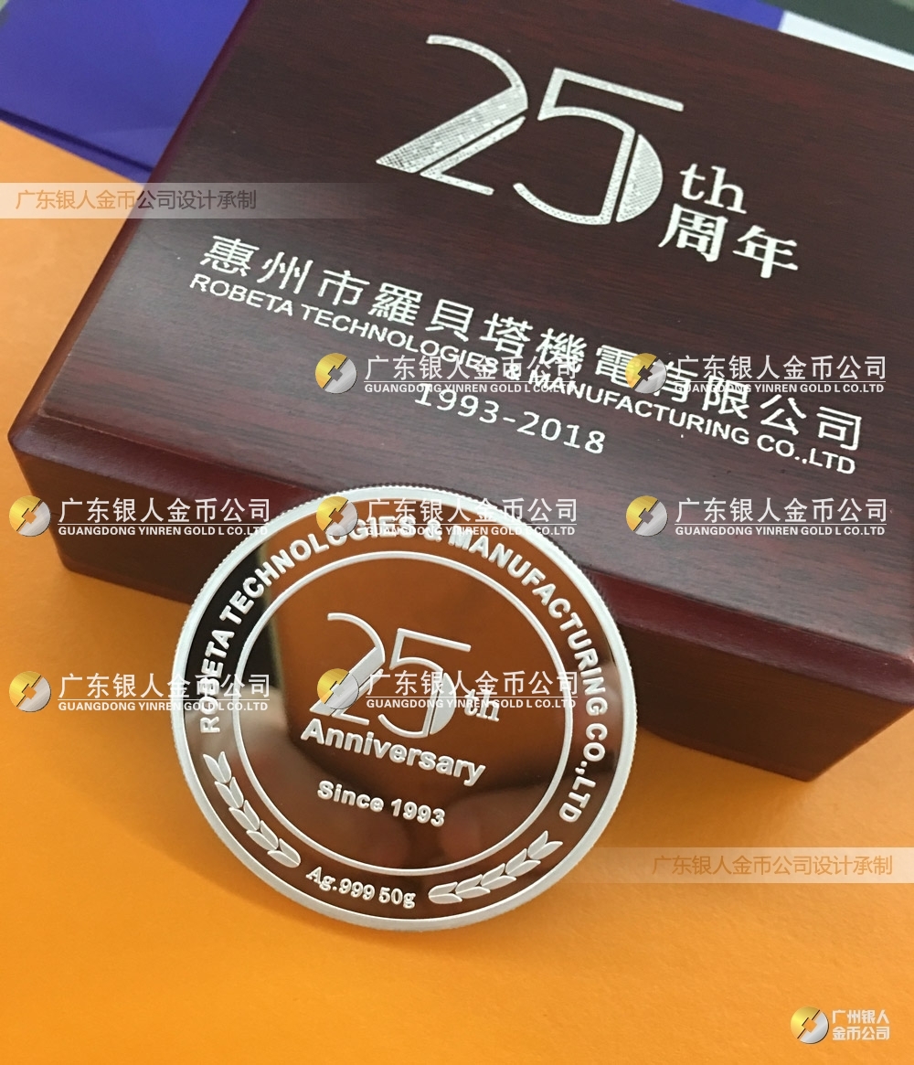 創建于1993年的機電行業品牌羅貝塔,為工業自動化設備領先企業,特此委托我司定制慶祝公司成立25周年紀念銀幣。