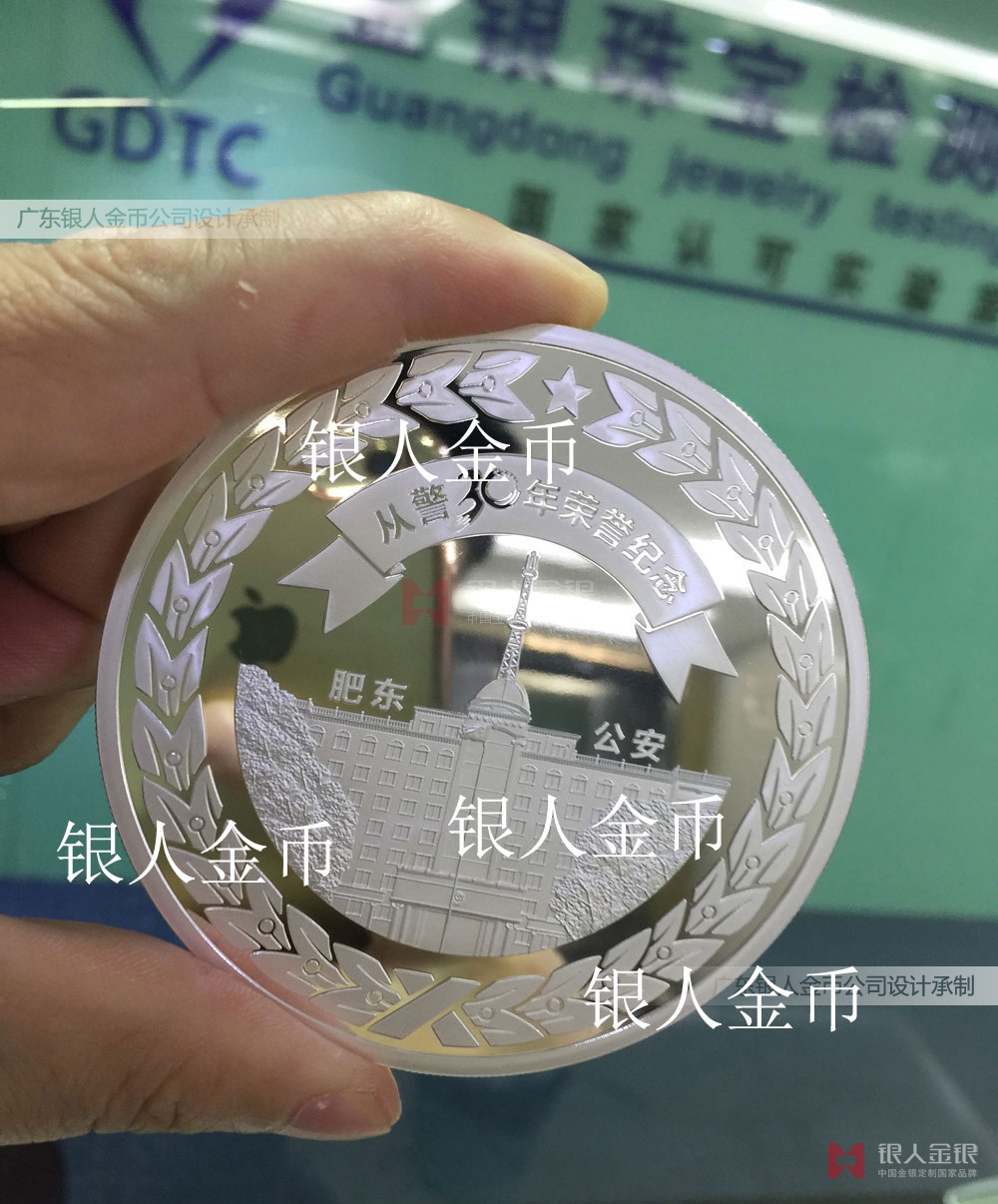 肥東縣公安局從警30年榮譽退休紀念章定制_金銀紀念幣定制_從警特定年限紀念章制作