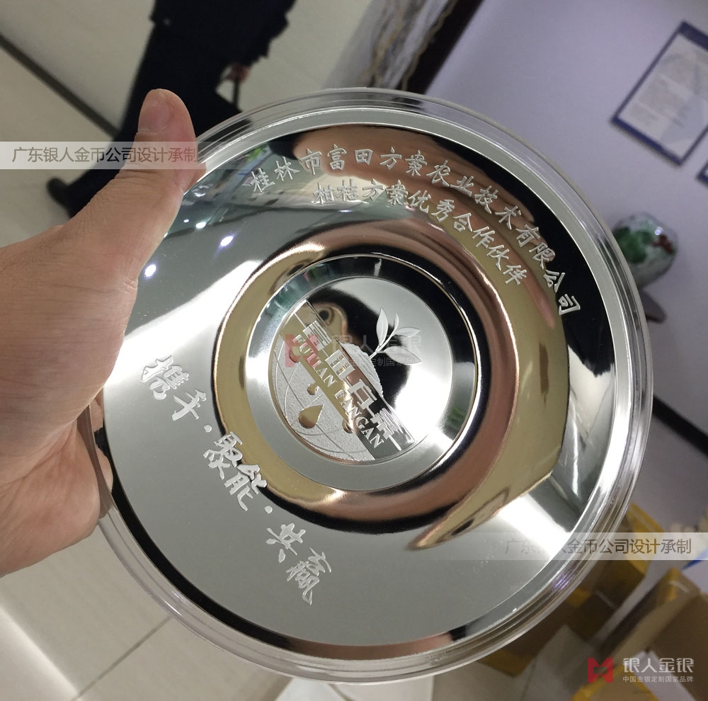 廣西壯族自冶區桂林富田科技公司值此公司成立周年慶典之際,制作紀念盤定制、銀盤定制、獎盤定制、獎碟定制。