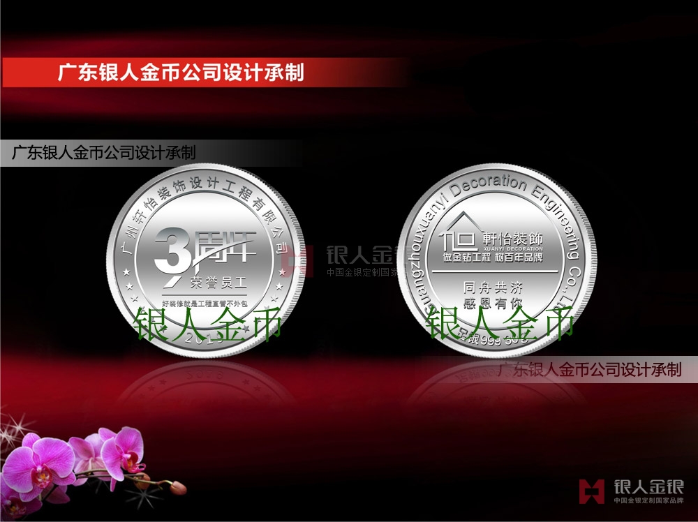廣州軒怡裝飾設計工程有限公司值此公司品牌蝸窩家品牌創立六周年慶典之際,定制足銀紀念牌隆重紀念。