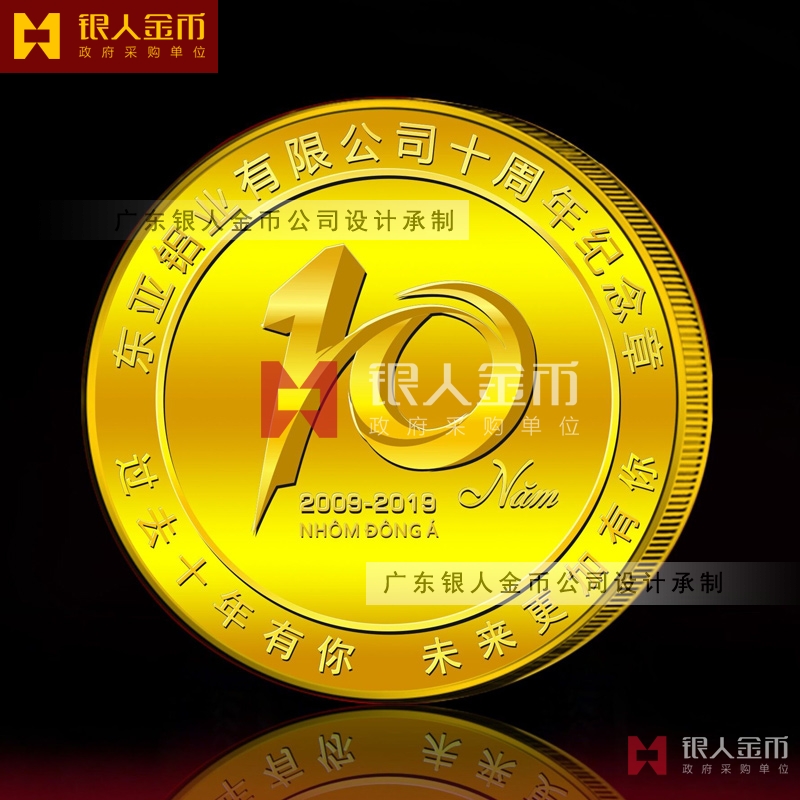 東亞鋁業集團在創業十年后恰逢公司成立10周年紀念慶典、委托定制純金銀紀念幣1200枚。