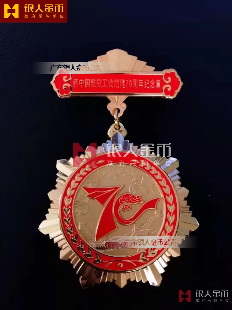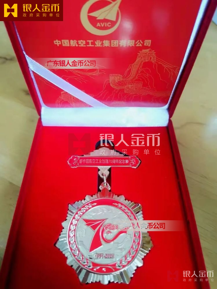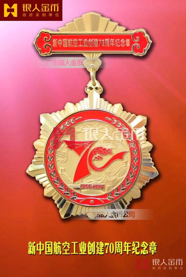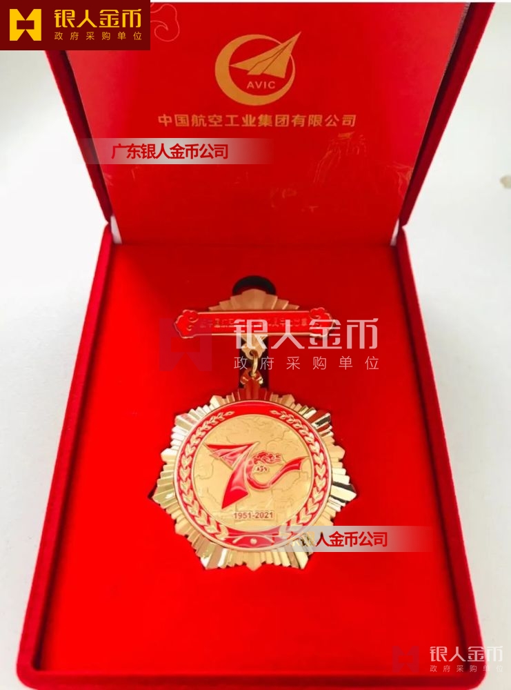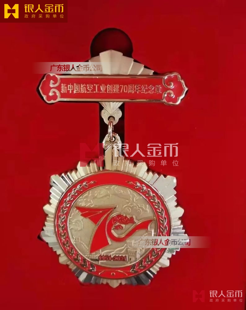 為慶祝黨領導新中國航空事業發展70周年,航空報國、航空強國。集團公司為全體在職人員頒發航空報國、航空強國企業文化下的中航工業70周年紀念章、為離休人員頒發、退休人員頒發定制了“新中國航空工業創建70周年”紀念章。
