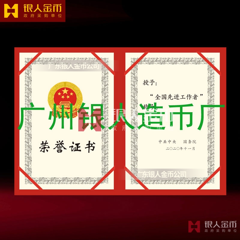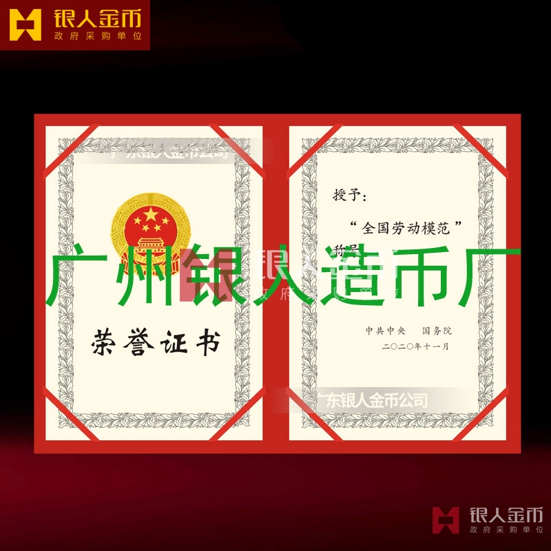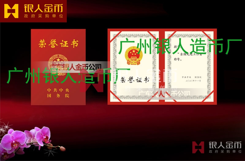 【證書制作】 廣東銀人金幣公司-榮譽證書制作廠家