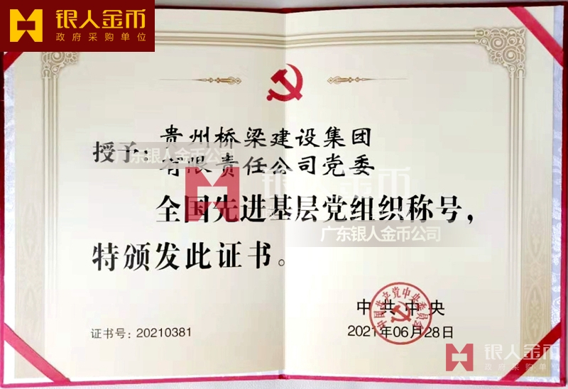 中組部全國先進基層黨組織獎牌_先進黨組織牌匾_先進集體獎牌_兩優一先獎牌獎章證書
