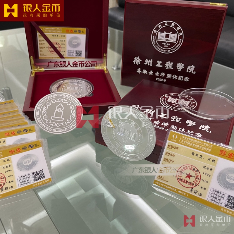 江蘇徐州工程學院慶祝教師節老師從教30年榮譽紀念章定制_老師光榮退休紀念牌訂制_教師職工榮休紀念銀章定制_老師退休銀獎牌_教師節銀牌銀質獎章徽章胸章定制