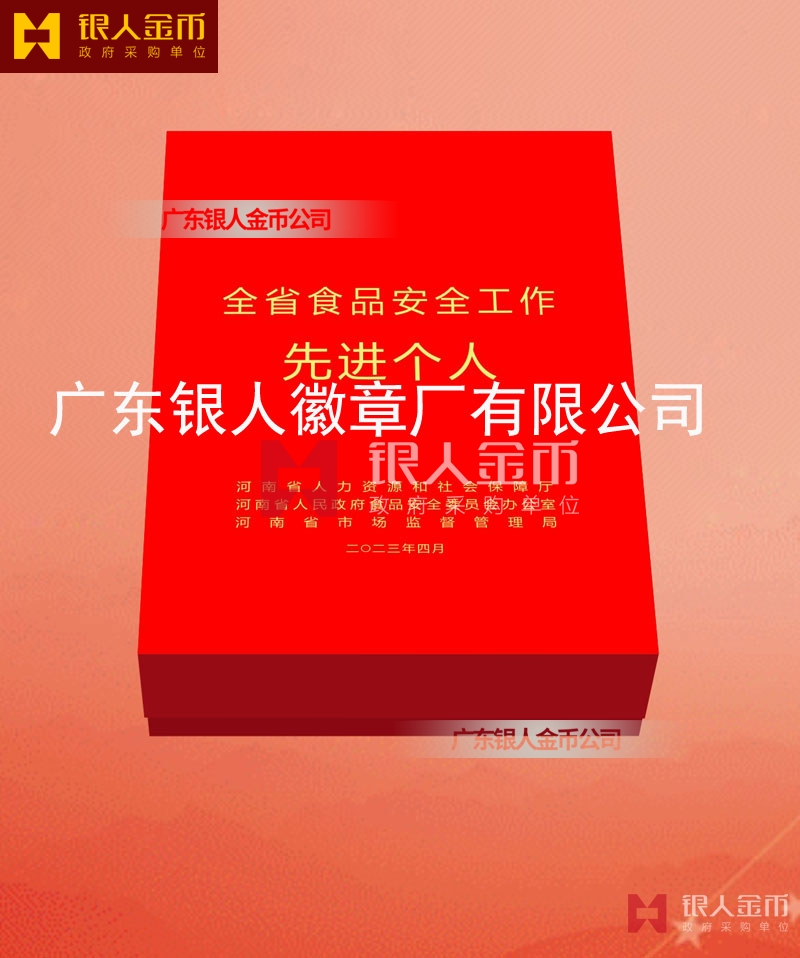河南省政府食品安全工作先進個人獎章定制_表彰獎勵勛章定制_工商市場監管局單位獎牌獎章定制_市場監督管理局證章定制定做制作