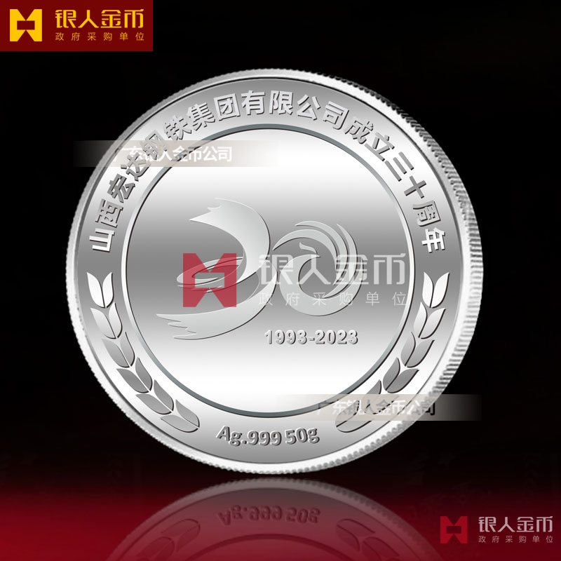 山西宏達鋼鐵集團公司成立30周年慶典紀念幣定制_企業周年慶純金銀幣定制_公司年會純銀紀念章定制_集團表彰優秀老員入廠三十年榮譽紀念牌定制