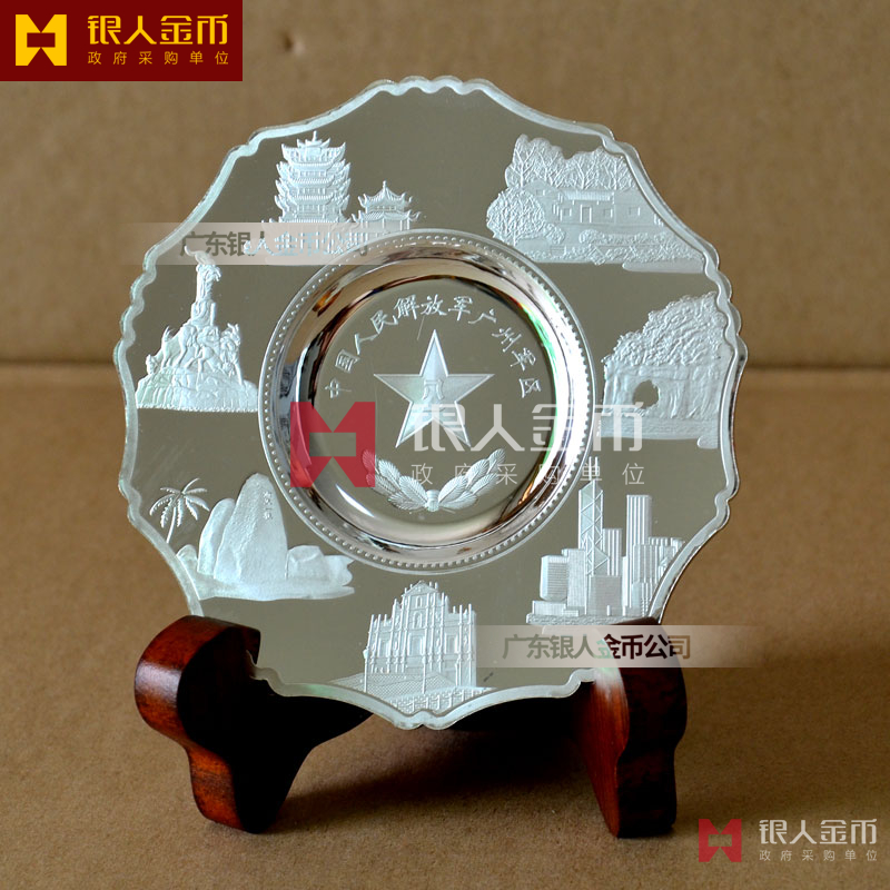 南部戰區廣州軍區戰友聚會金銀紀念盤定制_戰友聯誼會純銀紀念品定制_戰友聚會純銀制品定制_廣州金銀首飾公司_廣州黃金公司_廣州黃金加工定制