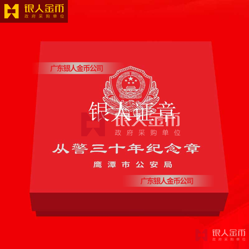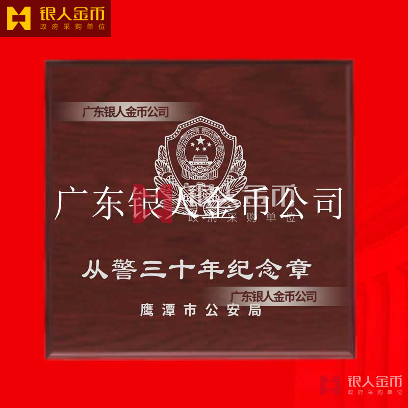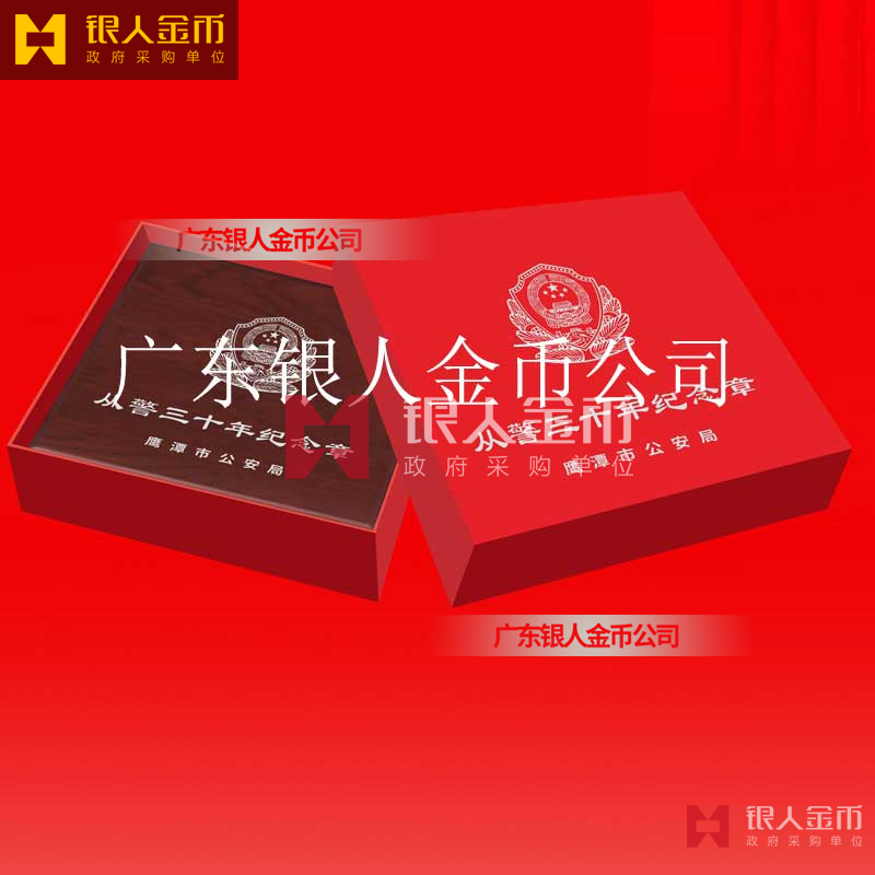 從警紀念章定制,從警年限紀念章定制,從警獎章定制——從警紀念章的底下主體部分都是警徽,上面橫檔部分是不相同的,有:“從警十年紀念(從警10年紀念章)”、“從警二十年紀念(從警20年紀念章)”、“從警三十年紀念(從警30年紀念章)”、“從警四十年紀念(從警40年紀念章)”不同的,從警十年紀念章(從警10年獎章)表面是鍍銅色(銅質獎章)、從警二十年紀念章(從警20年獎章)表面鍍銀色(銀質獎章)、從警三十年紀念章(從警30年獎章)和從警四十年紀念章(從警40年獎章)表面鍍金色(金質獎章) ,整體將從警獎章或從警紀念章(從警特定年限紀念章也叫從警章)鑲嵌在三折的立式木盒上面,木盒外面配有紙盒,整體做工精美,木盒紙盒上面都刻有警徽從警年限等。