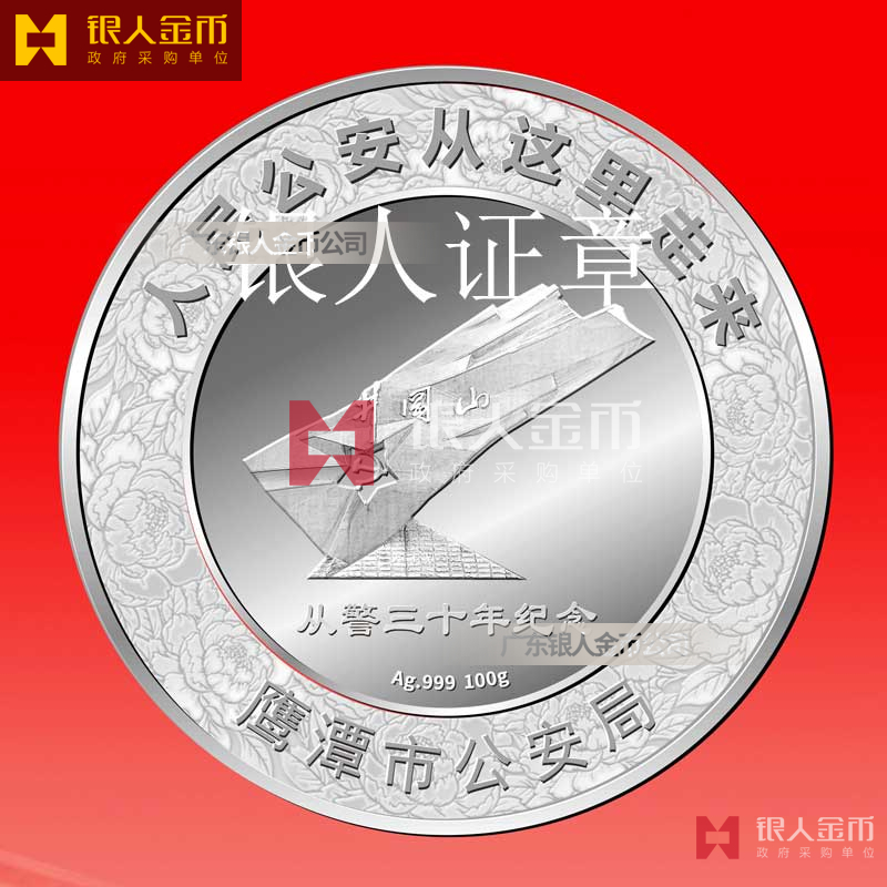 【從警三十紀念章制作】 廣東銀人金幣公司-獎章制作廠家