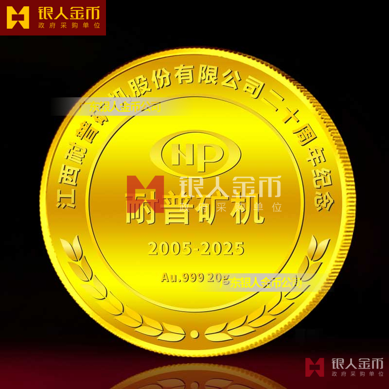 江西耐普礦機公司成立20周年紀念金幣制作_上市公司年會金銀幣制作_上市公司年會金銀章定制_企業創立二十周年定制金銀幣